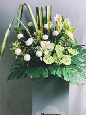 Green Anthuriums, Green Brassic, Monstera, Panadas, Song Of India, White Ball Chrysanthemum, White Easter Lily