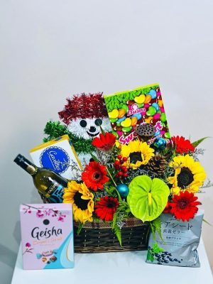 Foilage, Green Hydrangeas, Hawaiian Green Anthurium, Local Bird, Pink Lilies, red ginger, Sunflowers, Yellow Phoenix