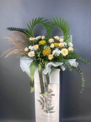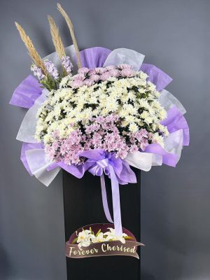 Chinese Funeral, Christian Funeral, Chrysanthemum, Condolences Flowers & Fruits Arrangement, Hindu Funeral, Mathiola, Muslim Funeral, Pom