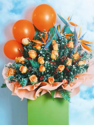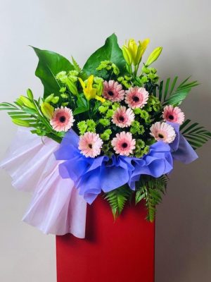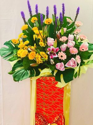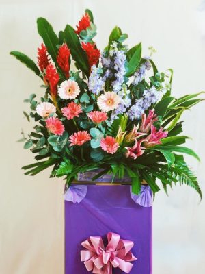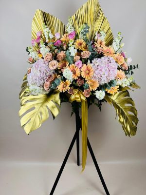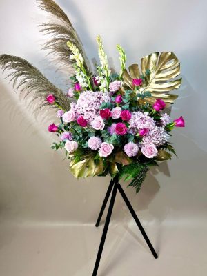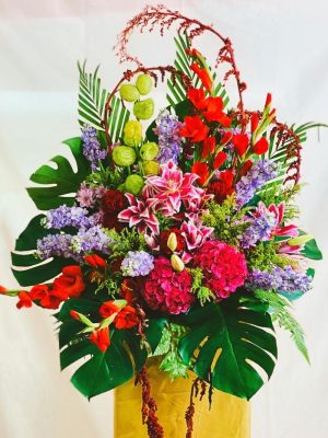 Foilage, Gladiolus, Green Bubble, Hydrangea, Mathiola, Pink Lilies, Poms, Weeping Willow, Yellow Phoenix