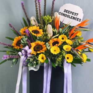 Bird Of Paradise, Green Spider Chrysanthemum, Pink Chrysanthemum, Pink Gerberas, Pink Lilies, Purple Orchids, Yellow Gerberas