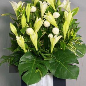 Green Anthuriums, Green Brassic, Monstera, Panadas, Song Of India, White Ball Chrysanthemum, White Easter Lily