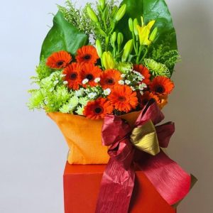 Foilage, Green Hydrangeas, Hawaiian Green Anthurium, Local Bird, Pink Lilies, red ginger, Sunflowers, Yellow Phoenix