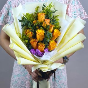 Foilage, Gladiolus, Green Bubble, Hydrangea, Mathiola, Pink Lilies, Poms, Weeping Willow, Yellow Phoenix