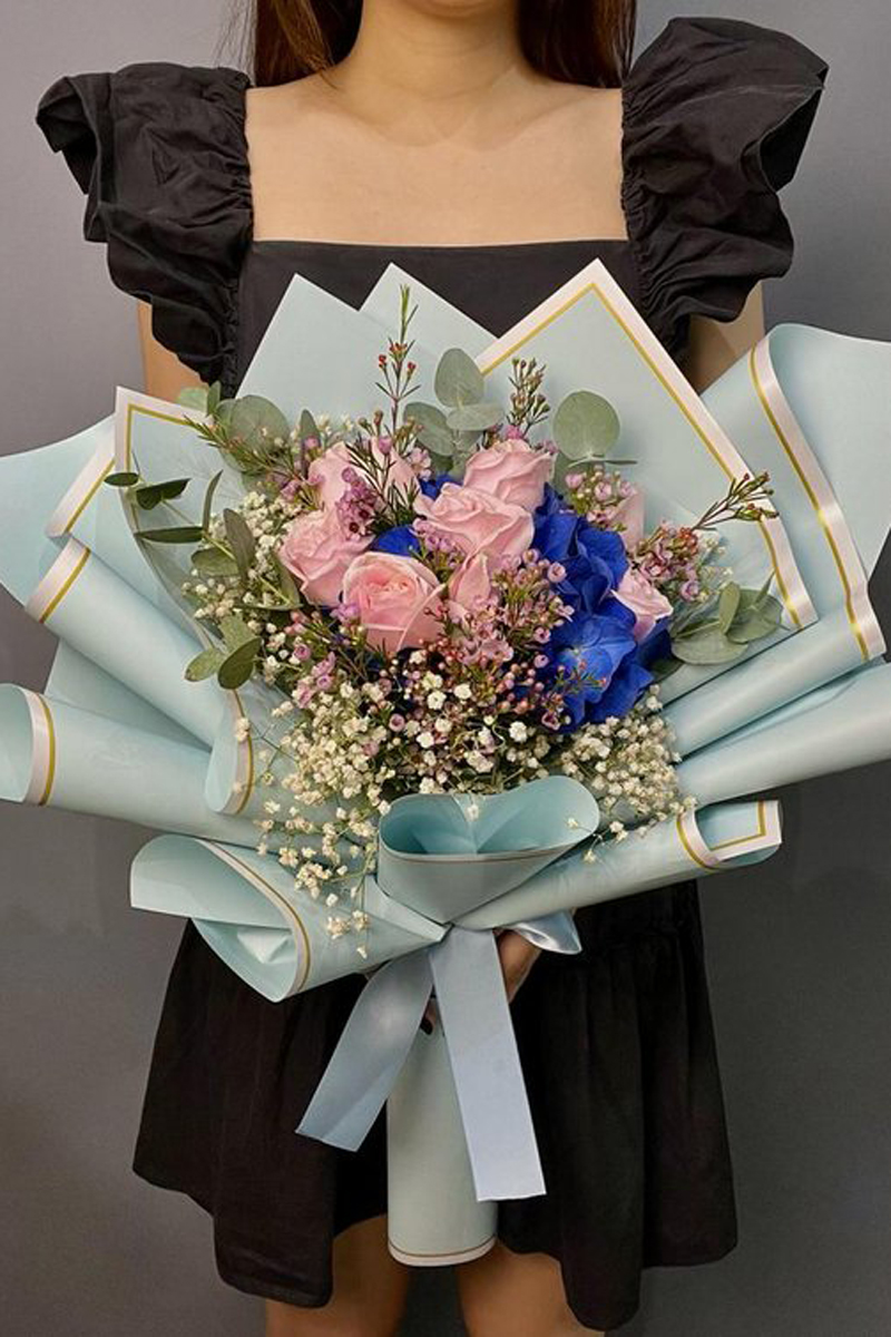 - 1 stalk blue hydrangea