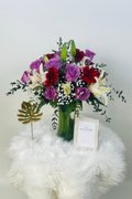 Bring a smile on her even in the toughest time. Send a wonderful assortment of beautiful and jovial star gazers blended in a mix of red gerberas and yam roses, and see how things work out in your favor and make her smile.